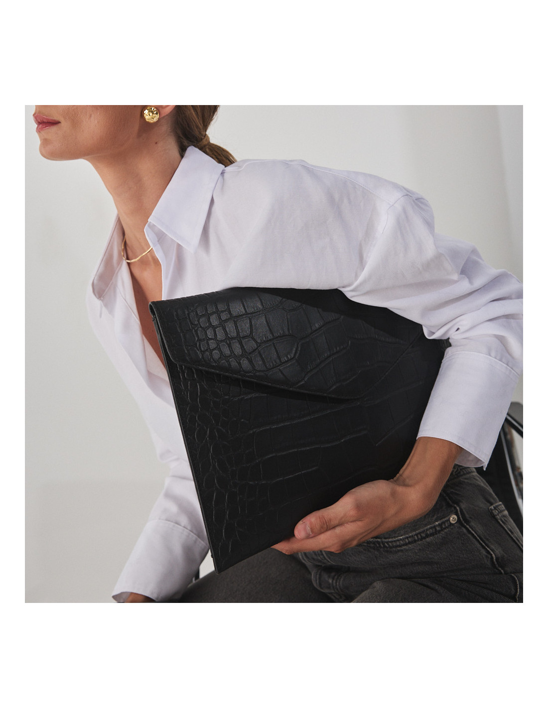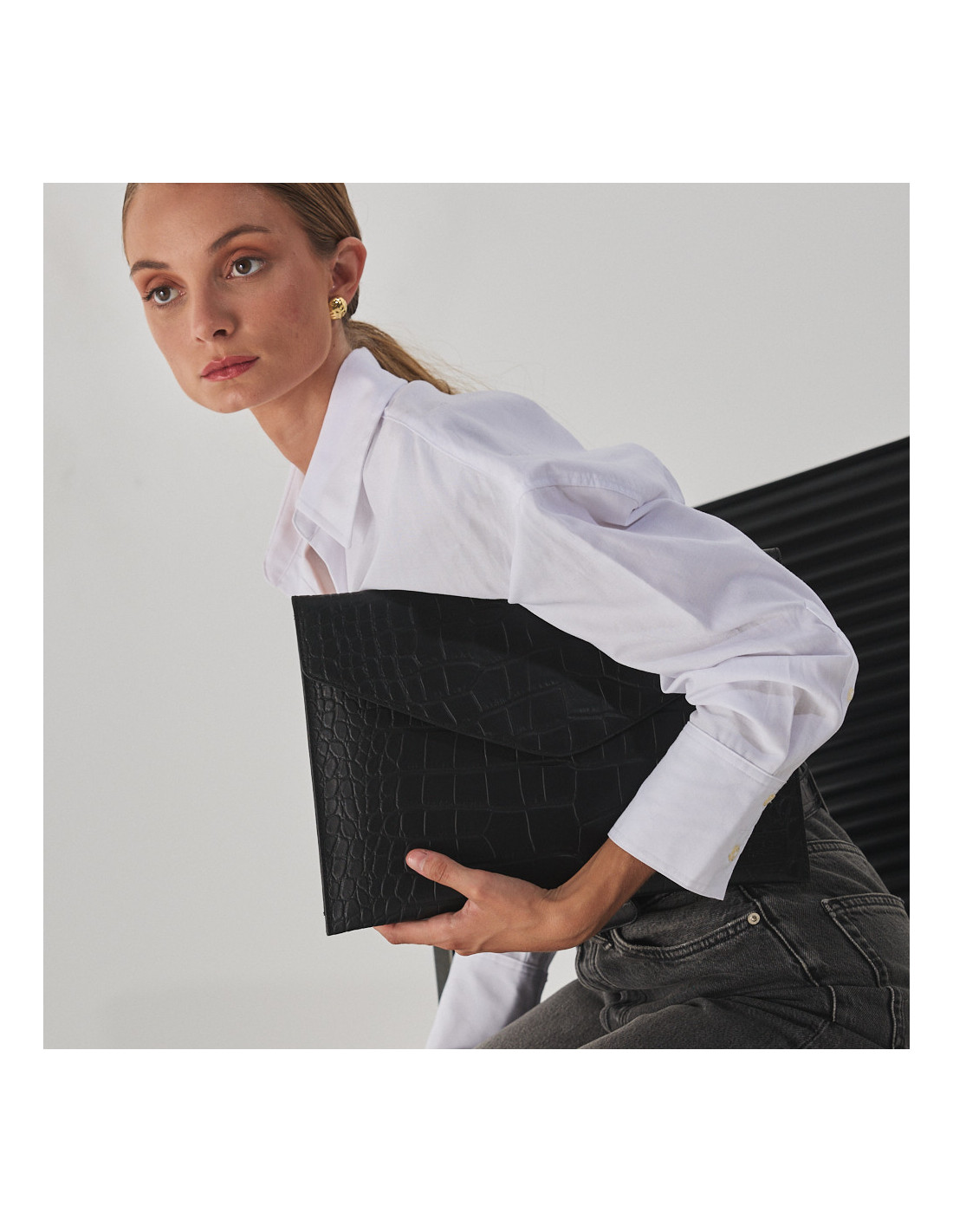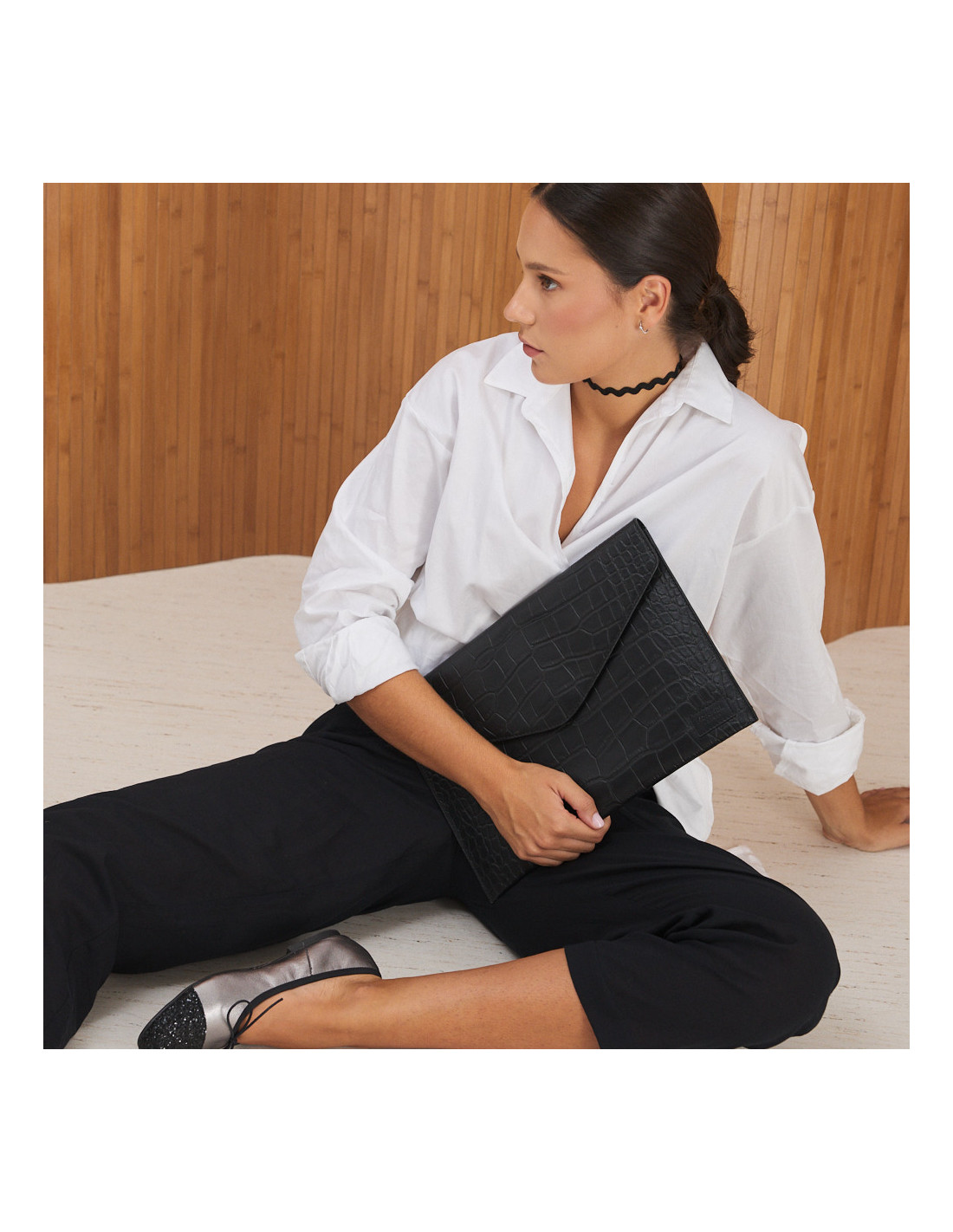 Descubra as nossas capas de laptop Elegance Croco, meticulosamente projetadas para quem busca proteção com estilo para seus dispositivos e documentos. Confeccionadas em couro de primeira qualidade com um acabamento em relevo de crocodilo, essas capas de couro para laptop não apenas protegem seu dispositivo, mas também adicionam um toque de elegância à sua coleção de acessórios e aos seus looks diários. Com dimensões de 35,5 cm de largura, 24 cm de altura e 1,5 cm de profundidade, essas capas são compatíveis com laptops de 13 e 14 polegadas.