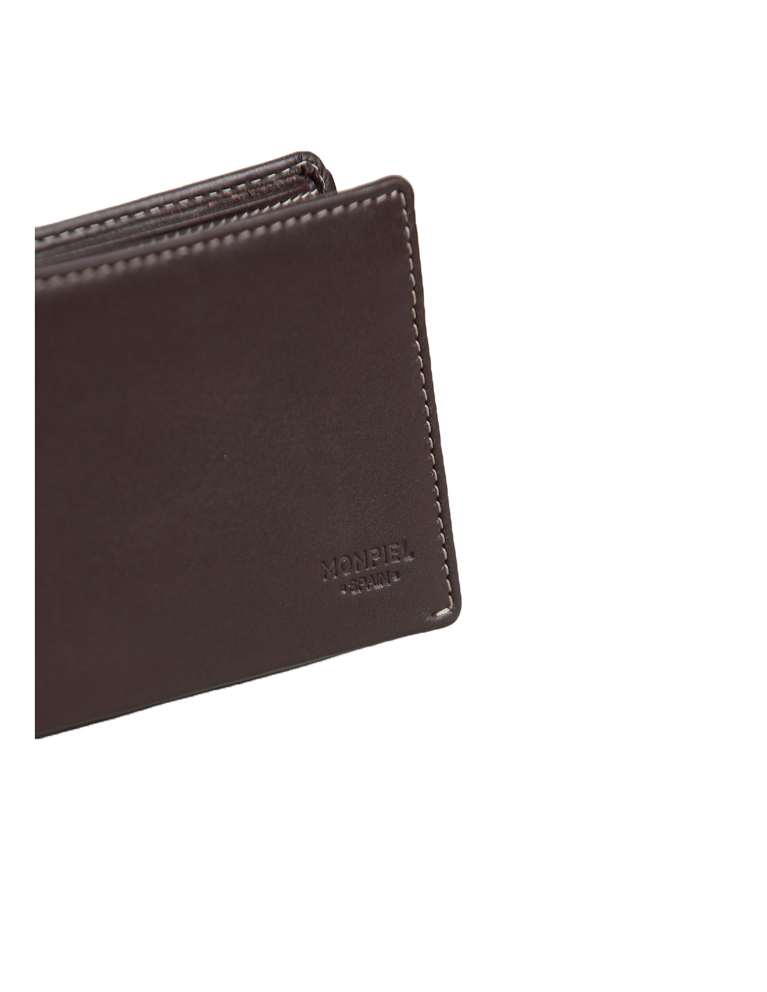 Men's leather wallet in American format with capacity for 10–12 cards and a double billfold compartment. This wallet features a classic, elegant style—making it a reliable and thoughtful gift for any occasion. Crafted from 100% natural, premium-quality leather designed to last many years. Its interior lining features blue stripes in MONPIEL's signature style, providing a sophisticated and refined finish. Available in brown, black, and havana.