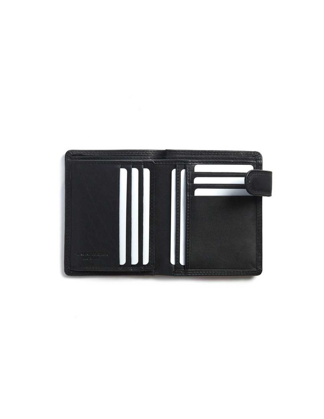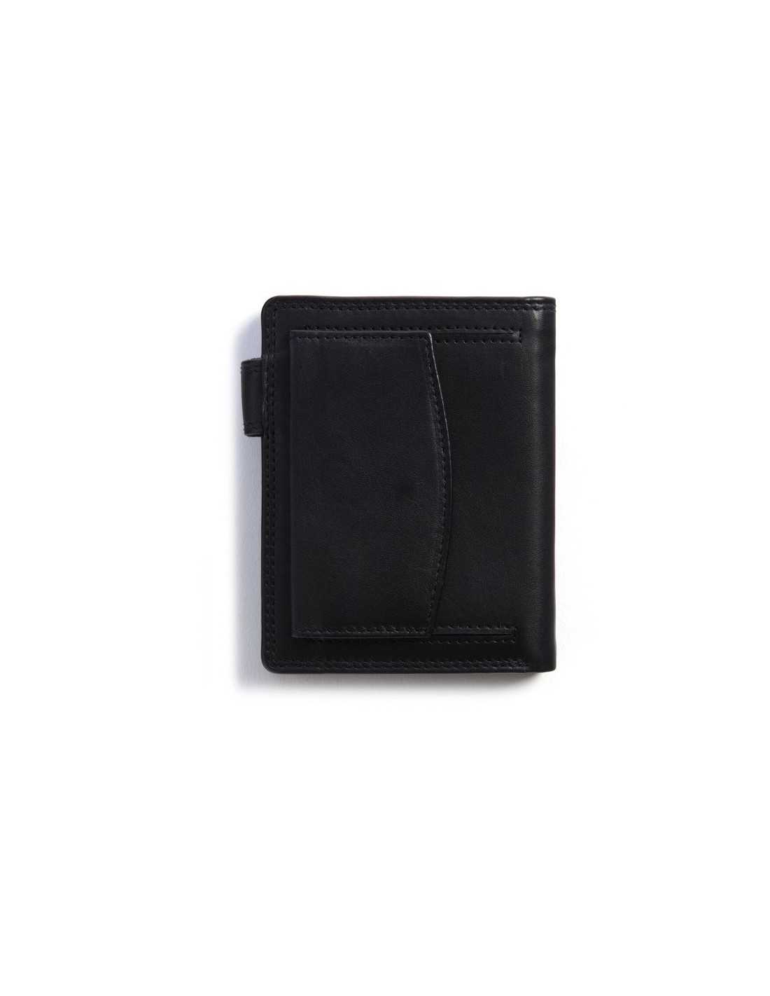 Leather wallet with external coin pocket and clasp, crafted from 100% natural leather. Specially designed for those who usually carry a wallet and coin purse separately. With an external coin pocket, this wallet stays slim and compact. Inside, it has space for 14–16 cards and a double billfold compartment. Available in two colours: black and brown.