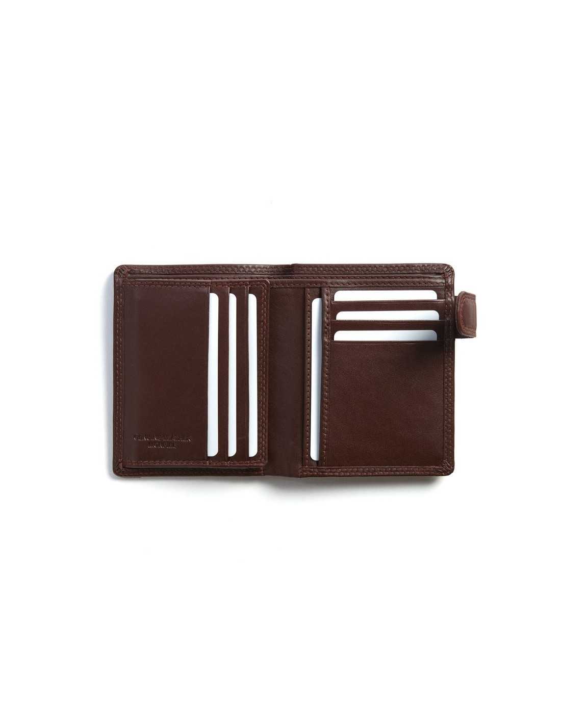 Leather wallet with external coin pocket and clasp, crafted from 100% natural leather. Specially designed for those who usually carry a wallet and coin purse separately. With an external coin pocket, this wallet stays slim and compact. Inside, it has space for 14–16 cards and a double billfold compartment. Available in two colours: black and brown.