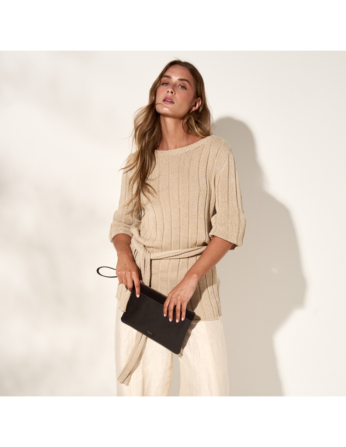 It comes with an interior zip pocket to keep essentials safe, which can also be used as a coin purse, and a wrist strap to carry it with comfort and style. It is ideal as a versatile bag – from an elegant clutch bag to a pouch for carrying chargers.