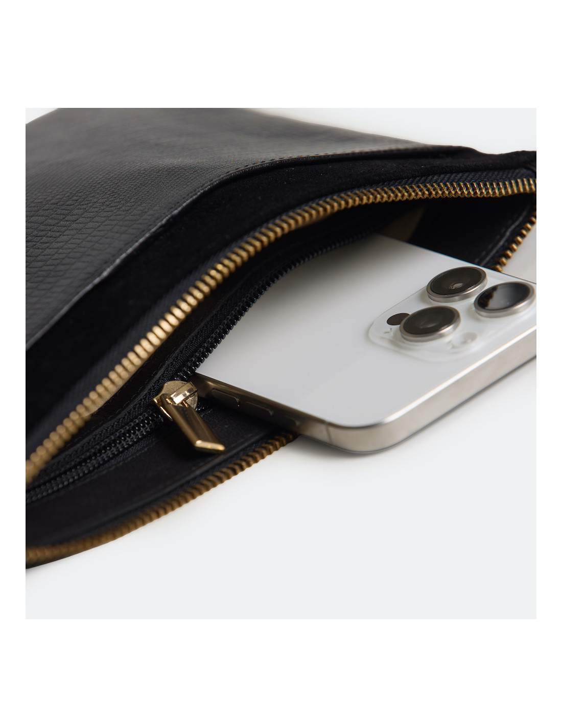 It comes with an interior zip pocket to keep essentials safe, which can also be used as a coin purse, and a wrist strap to carry it with comfort and style. It is ideal as a versatile bag – from an elegant clutch bag to a pouch for carrying chargers.