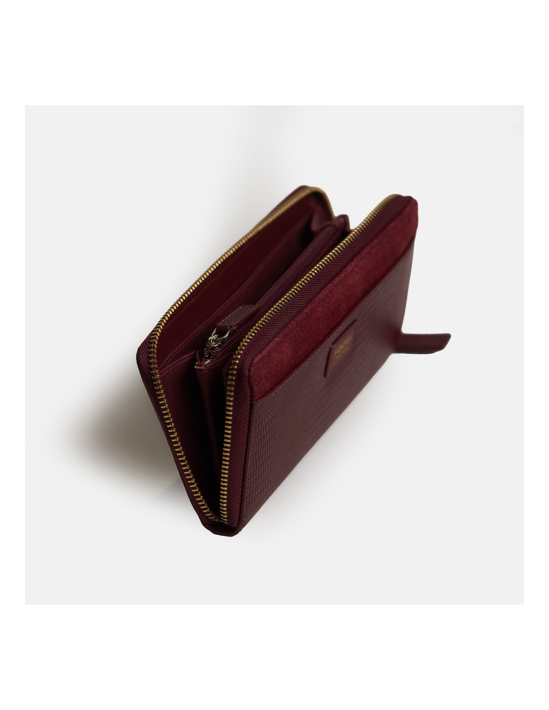 Leather wallet for women with a zipper, keeping everything organised... space for notes, cards, and coins with a separate compartment and zipper. Women's wallet made from cowhide leather with a mix of suede, giving it a distinctive touch. Available in two colours: embossed croc tan and smooth black... total elegance. Striped interior lining for an extra special touch.