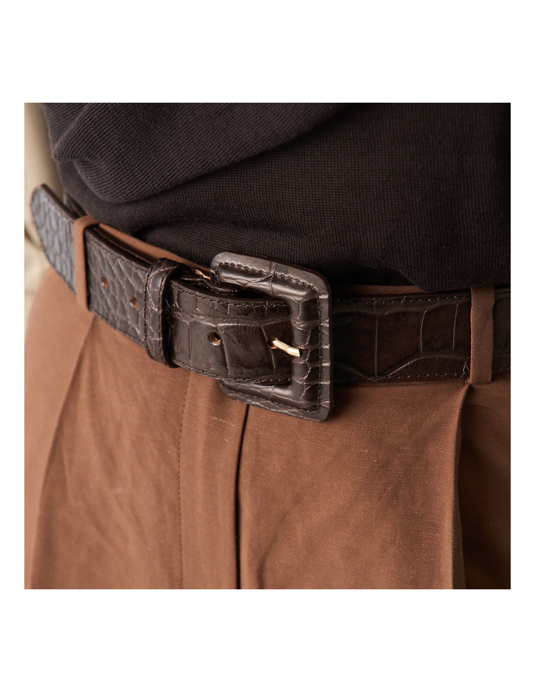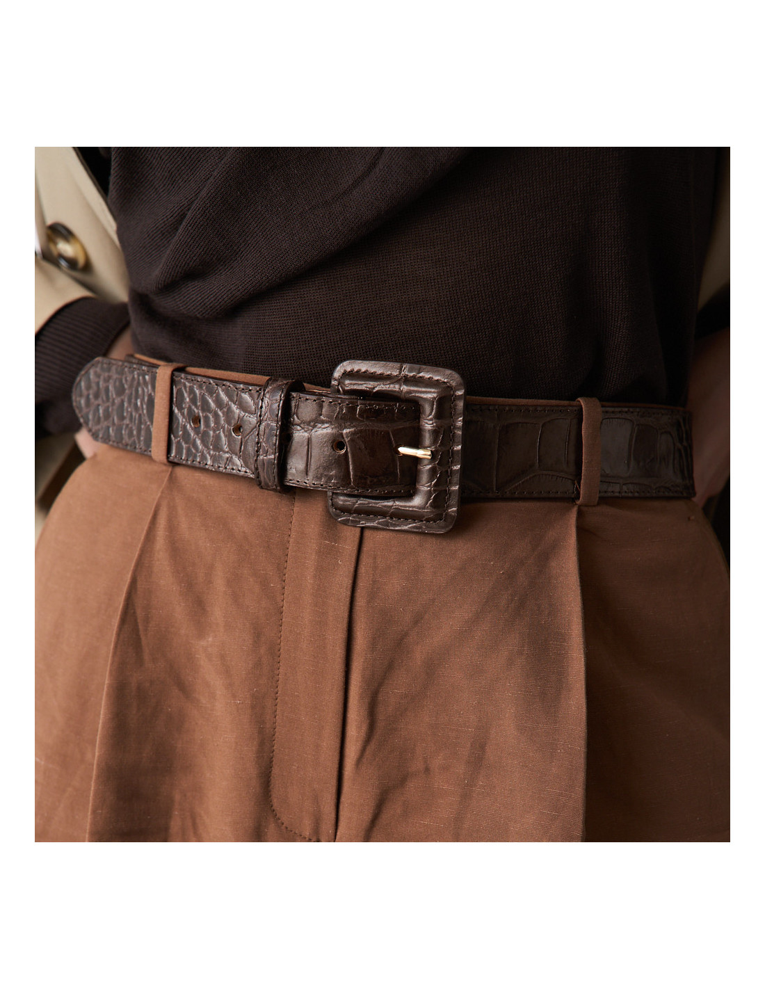 Width: 40mm. Women’s wide sport belt with covered buckle. This leather belt is made from a single piece of vegetable-tanned leather, known for being one of the most durable leathers on the market. With its natural look, it’s perfect for everyday wear. Wide leather belts are ideal for jeans, and this sporty design is perfect for your daily outfits. Available in various colors: tan, beige, black, burgundy, beige snake, and brown croc.