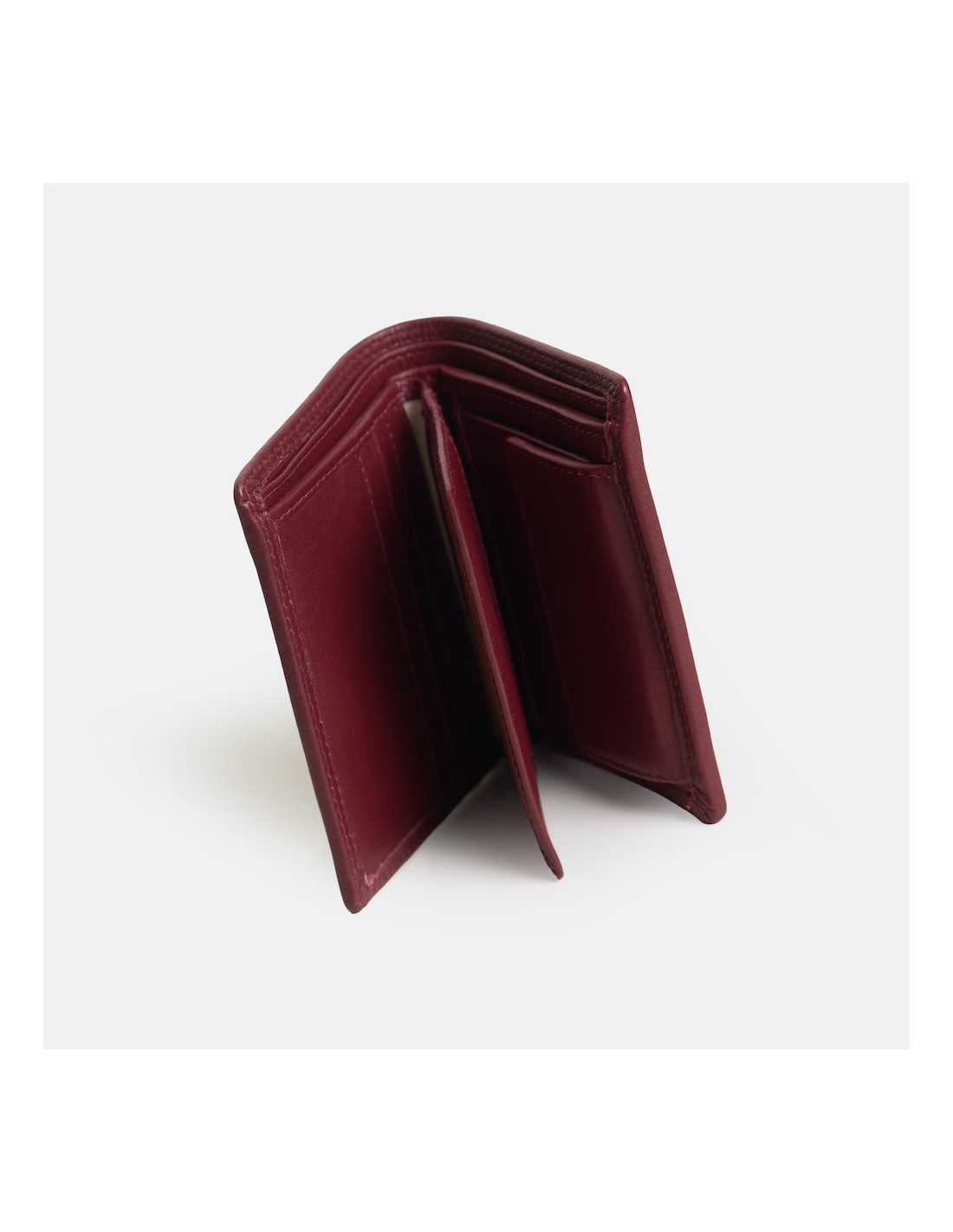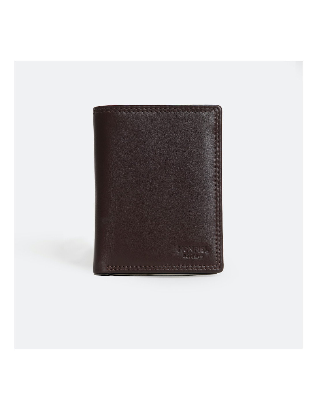 Men's wallet with interior coin pocket, made from 100% natural leather. Classic design with double stitching. Capacity for 9-11 cards, double billfold, and coin pocket. Available in two colors: black and brown.