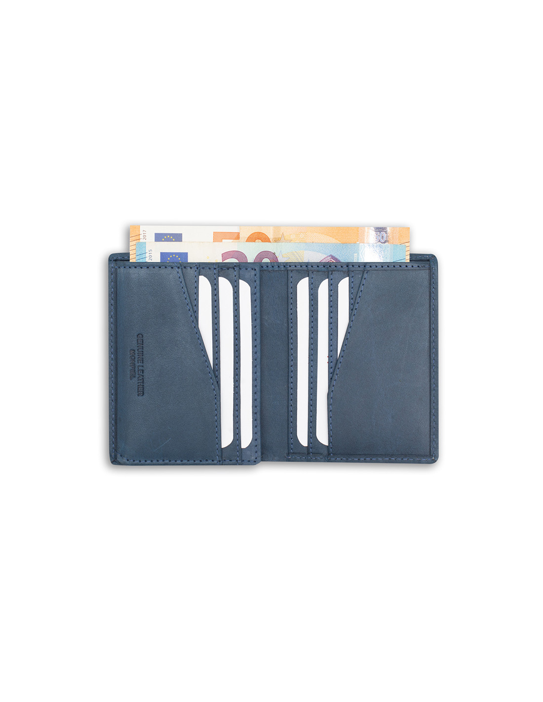 Men's leather wallet. A simple wallet crafted in Spain from high-quality leather. This men's cardholder is perfect for carrying all your documents, with space for 12-15 cards and a double bill compartment. Its modern design, without a closure, makes it an ideal choice. Available in three shades: Havana, brown, and blue.