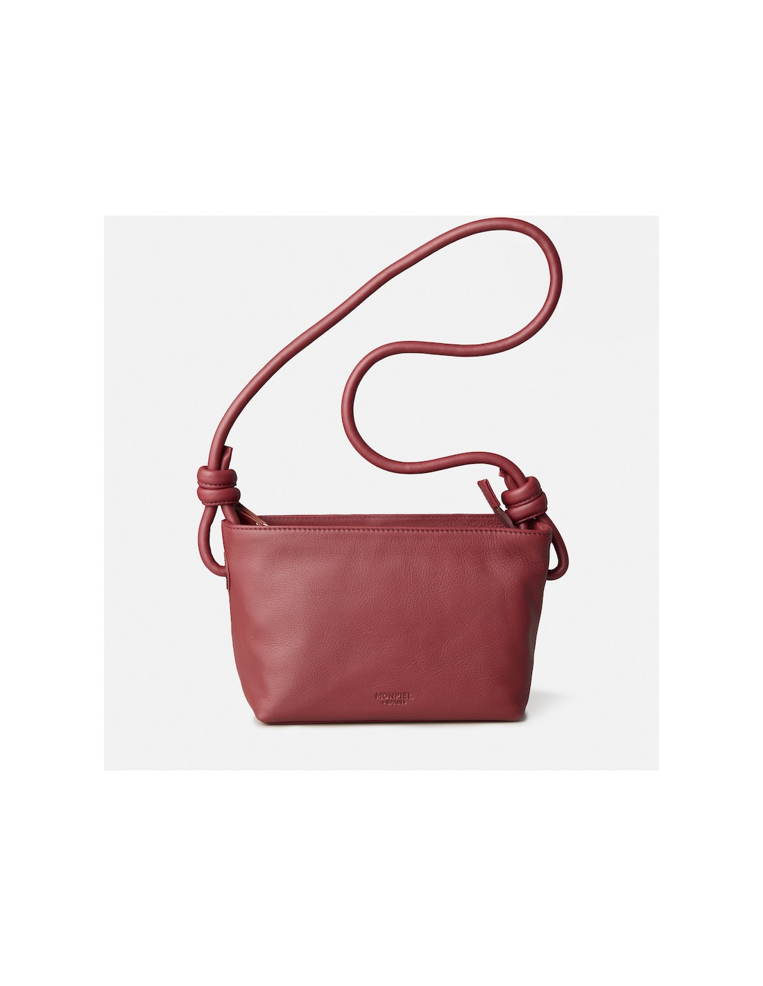 Small leather bag for women with knotted strap, perfectly sized to wear over the shoulder. At MONPIEL, we believe in timeless quality basics over quantity. Our small bag features knots on the strap so you can easily adjust the length — wear it shorter at night and longer during the day. Its versatility makes it ideal with both jeans and dresses. A timeless piece handcrafted from premium-quality leather. Handle length: 60 cm (short) – 100 cm (long). Available in 6 colors: tan, black, burgundy, brown, silver, and taupe. A small black leather bag is a wardrobe essential for any special occasion.