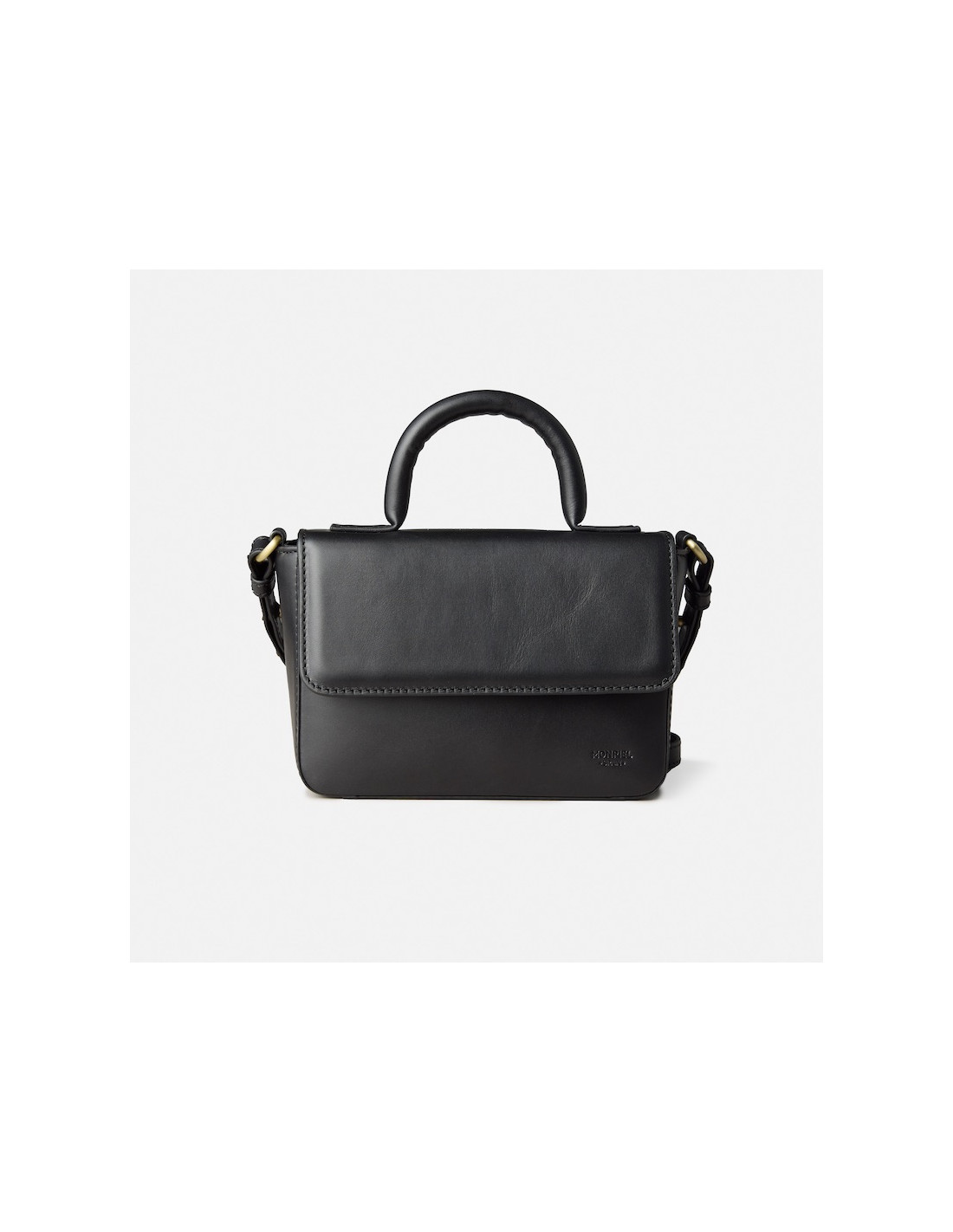 Small Armado leather bag in black, shown from the front with long handle on a white background - MONPIEL