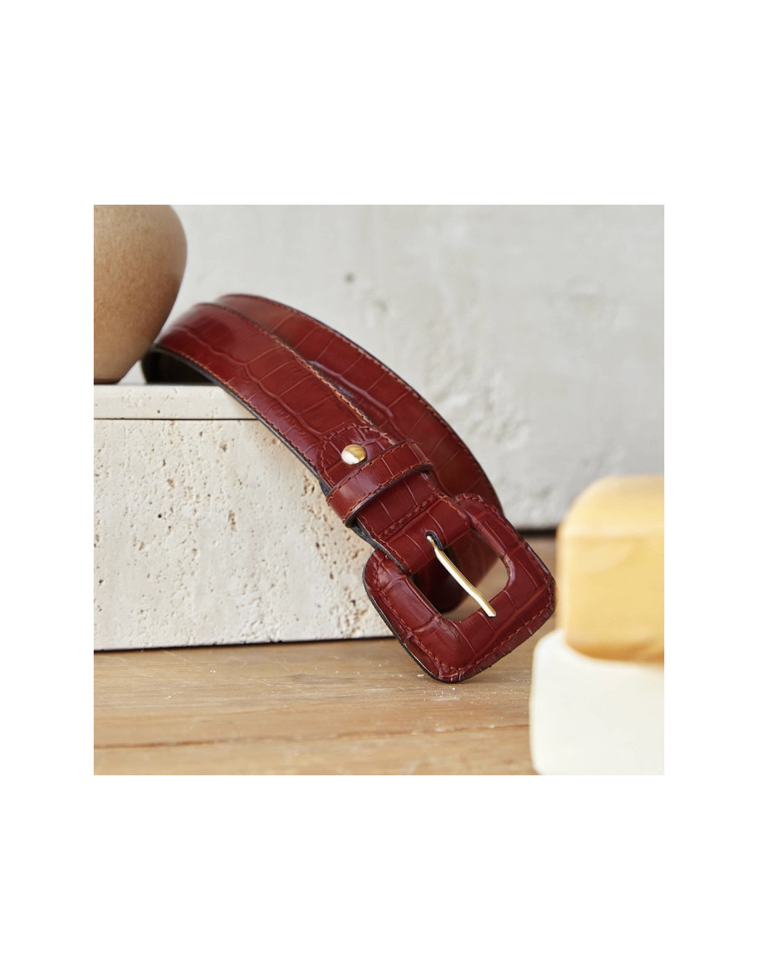 Women's leather belt with a leather-covered buckle. Designed to complement any look with an elegant and versatile touch. Its 30 mm width makes it perfect to pair with all kinds of garments. Handcrafted in Spain, this belt stands out for its quality and timeless style. With a medium length, it can be worn at the waist or hips and easily adjusted by adding more holes if needed. An essential piece for your everyday looks that elevates any outfit with simplicity and distinction.