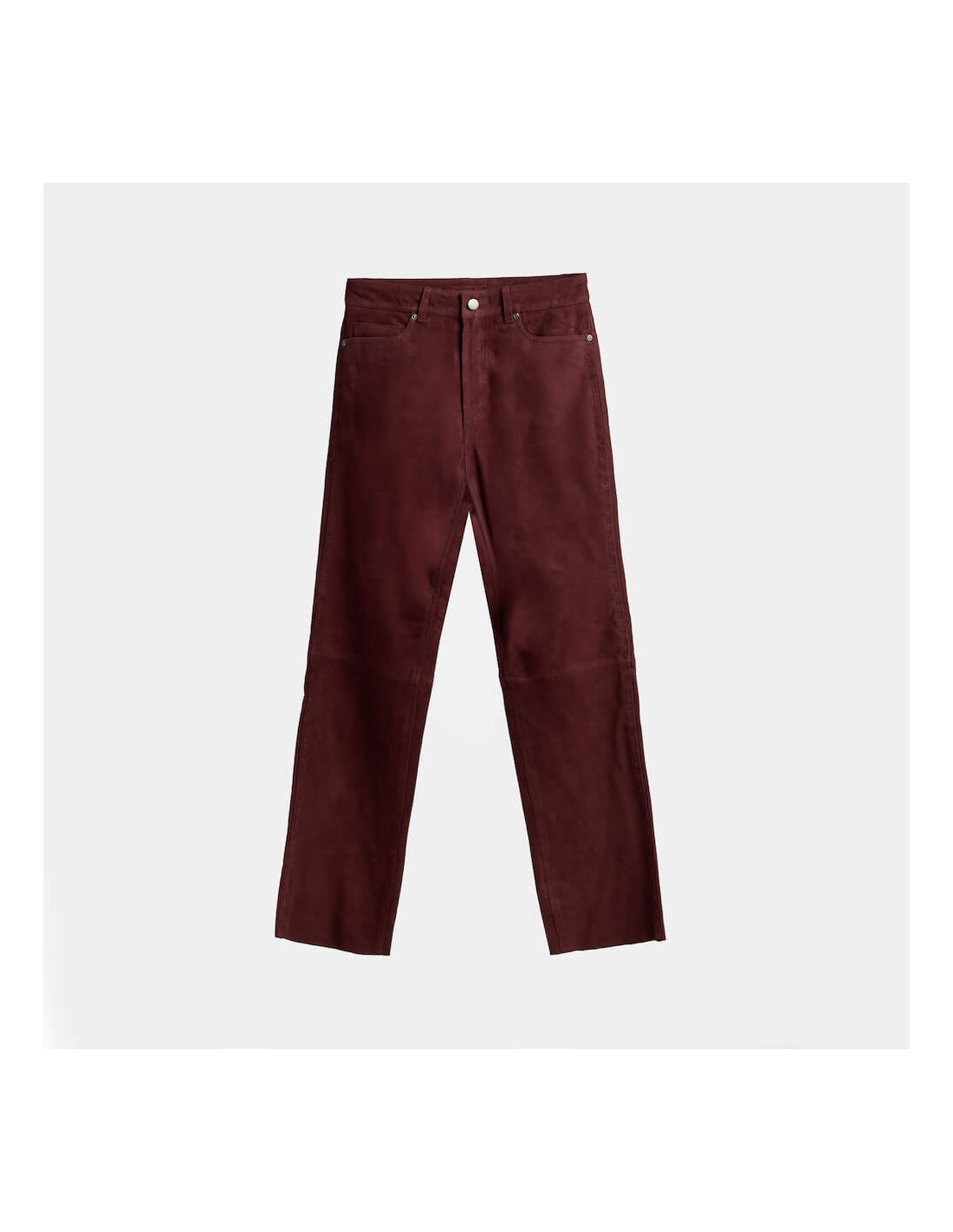 The cut is straight-leg, with just enough structure to feel like the perfect outfit with very little effort. They feature suede stitching along the sides, designed to match our burgundy suede jacket with the same detail. The perfect combo for the season. See the jacket here.