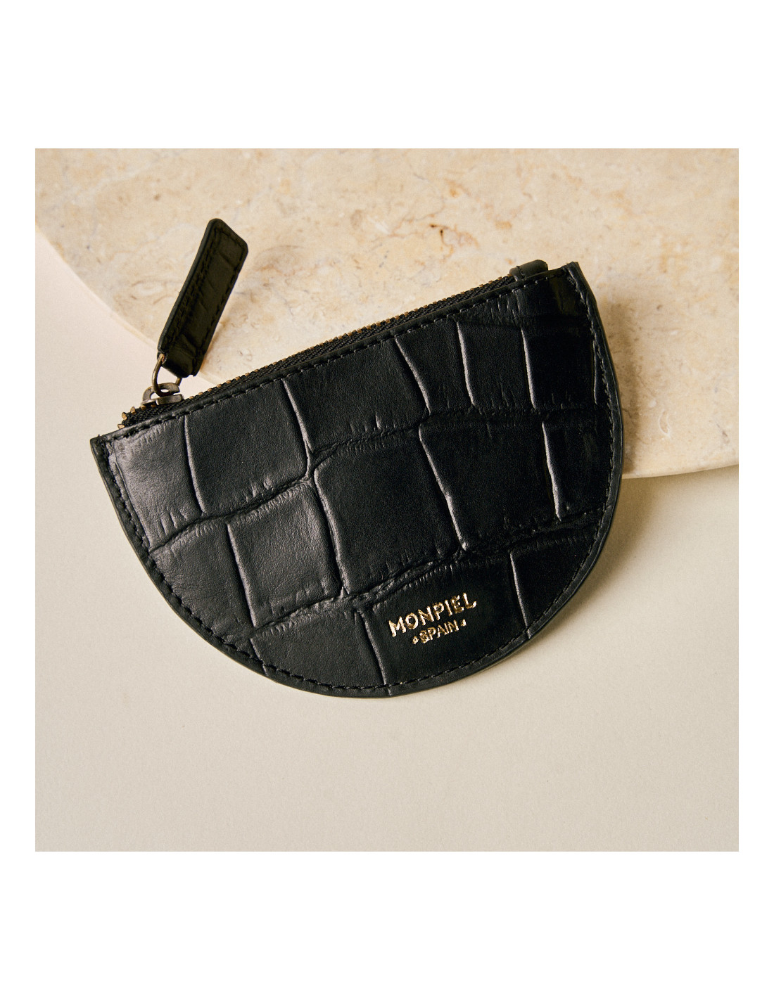 Leather coin purse in a half-moon shape for coins and cards! A simple and stylish way to carry coins, and the best part... you'll be able to carry a card and ID for those rushed moments when you want to carry something without taking up too much space! You'll appreciate it during those times when a small purse is your essential, and you don’t know what to do with your wallet. Available in embossed leather in cocoa, smooth brown, and black crocodile.